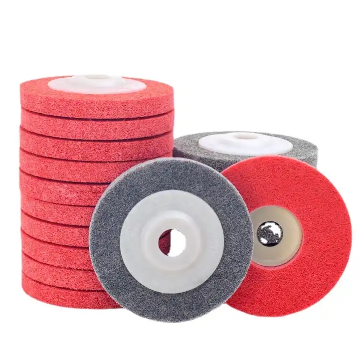 尼龍角磨片選取強度高、韌性大的纖維,均勻混合特級拋光砂,以嚴格的工藝配制而成,出光度強、耐磨、拋光金屬表面均勻亮麗光滑,不會留下纖毛砂粒及黑紋,還可去除金屬表面經久不褪的痕跡。